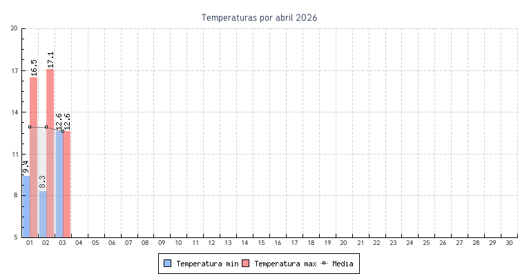 | 01 | 9.4 °C | 16.5 °C | 12.9 °C | 10.1 km/h (48.3 km/h) | NNO |