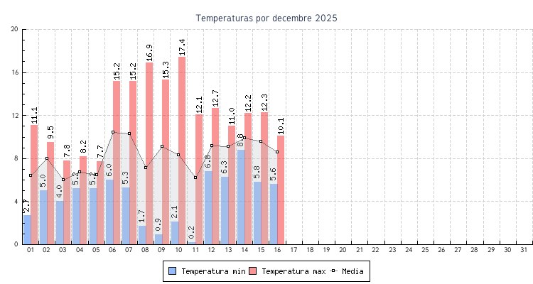 | 09 | 0.9 °C | 15.3 °C | 9.1 °C | 2.1 km/h (17.7 km/h) | SSO |