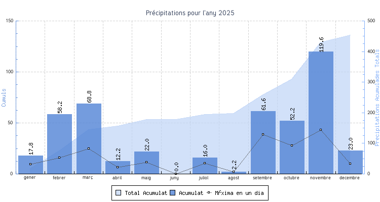 | febrer | 4.2 °C | 7.5 °C | 17.7 °C | 13.6 °C | 10.6 °C | 2.7 km/h | 48.3 km/h | S |
