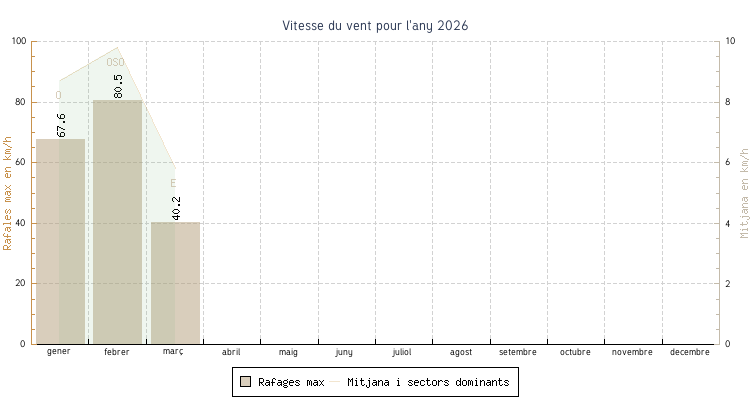 | març | 5.9 °C | 9.8 °C | 17.9 °C | 15.6 °C | 12.9 °C | 5.8 km/h | 40.2 km/h | E |