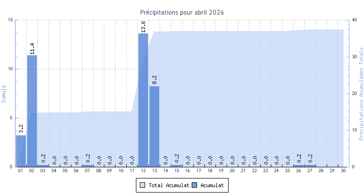 | 05 | 4.8 °C | 20.7 °C | 13.0 °C | 5.2 km/h (29.0 km/h) | SSO |