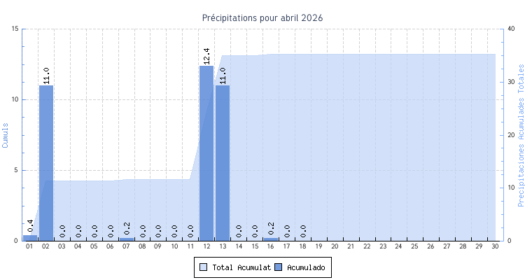 | Total | 4.4 °C | 28.4 °C | 14.2 °C | 5.9 km/h (82.1 km/h) | 35.2 mm | |