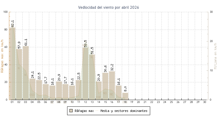 | min | max | mitjana | Velocitat (rafages) | Sector | ||