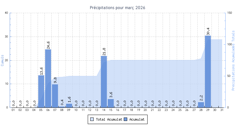 | Total | 5.3 °C | 22.4 °C | 12.7 °C | 3.5 km/h (62.8 km/h) | 102 mm | |