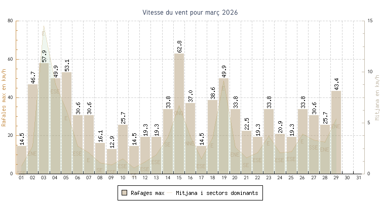 | min | max | mitjana | Velocitat (rafages) | Sector | ||
